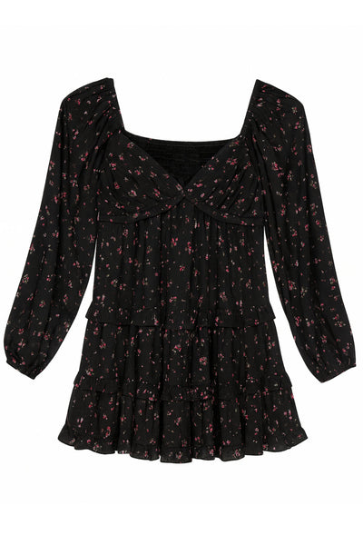 Katie J NYC Tween Lainey Long Sleeve Printed Day Dress in Midnight Floral